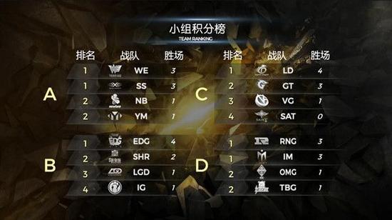 经过29、30两日的小组赛组内循环,各小组积分情况已经趋于稳定,EDG、LD继续以全胜姿态领跑B组、C组,WE、SS、RNG、IM等强队则各积三分并列A、D两组第一。