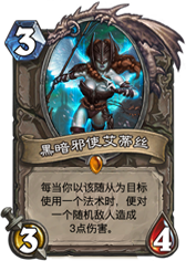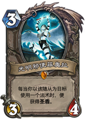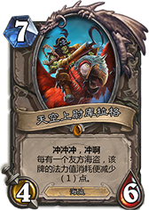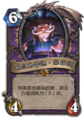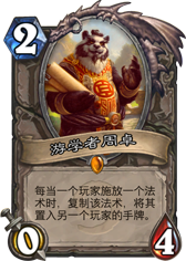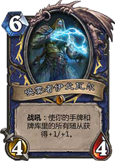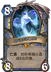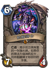 特效逆天但身材亏得比较厉害,缺点是费用太高也站不住场,效果基本等于8费4/4,抽一张牌并使其变为0费,上下限较高,适用性比较小。
