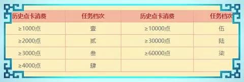 首先只要玩家在2016-03-28 00:00到2016-06-24 24:00期间游戏的总在线时长小于24小时,账号在梦幻西游中的“历史点卡消费”≥1000点(“历史点卡消费”指的是2004-01-16至2016-03-31期间的游戏时间和仙玉消费,不包括寄售点卡、藏宝阁交易、免费时间和免费仙玉等),系统会根据“历史点卡消费”的多少来评判玩家可以领取历史消费返利的档次,总共分为7个档次,当然每个档次的奖励各有不同,档次越高,奖励越丰厚,这对广大老玩家来说绝对是个贴心的福利。