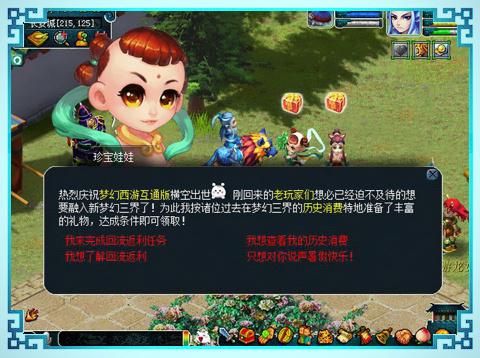 满足条件的玩家想要查询账号历史的点卡消费情况,在长安219,125的珍宝娃娃NPC处查询和完成回流返利的任务即可,如果你的“历史点卡消费”≥60000点,那么你就能把所有档次的奖励统统拿完,下面我们就来看看这些丰厚的奖励有哪些吧。