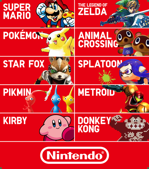 不同游戏种类的角色不可同时出现在同一件设计作品中。例如:一件T恤上可同时出现马里奥与路易基,但不可同时出现马里奥与林克。