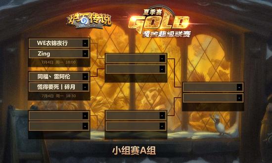 北京时间2016年7月4日18:00,《炉石传说》黄金超级联赛夏季赛即将揭开帷幕,首战将迎来小组赛A组的5场精彩对决。WE衣锦夜行、Zing、同福丶雷阿伦以及慌得要死丨碎月四位选手将进行激烈的三职业BO5双败赛制,最终胜者组与败者组第一将可晋级16强。