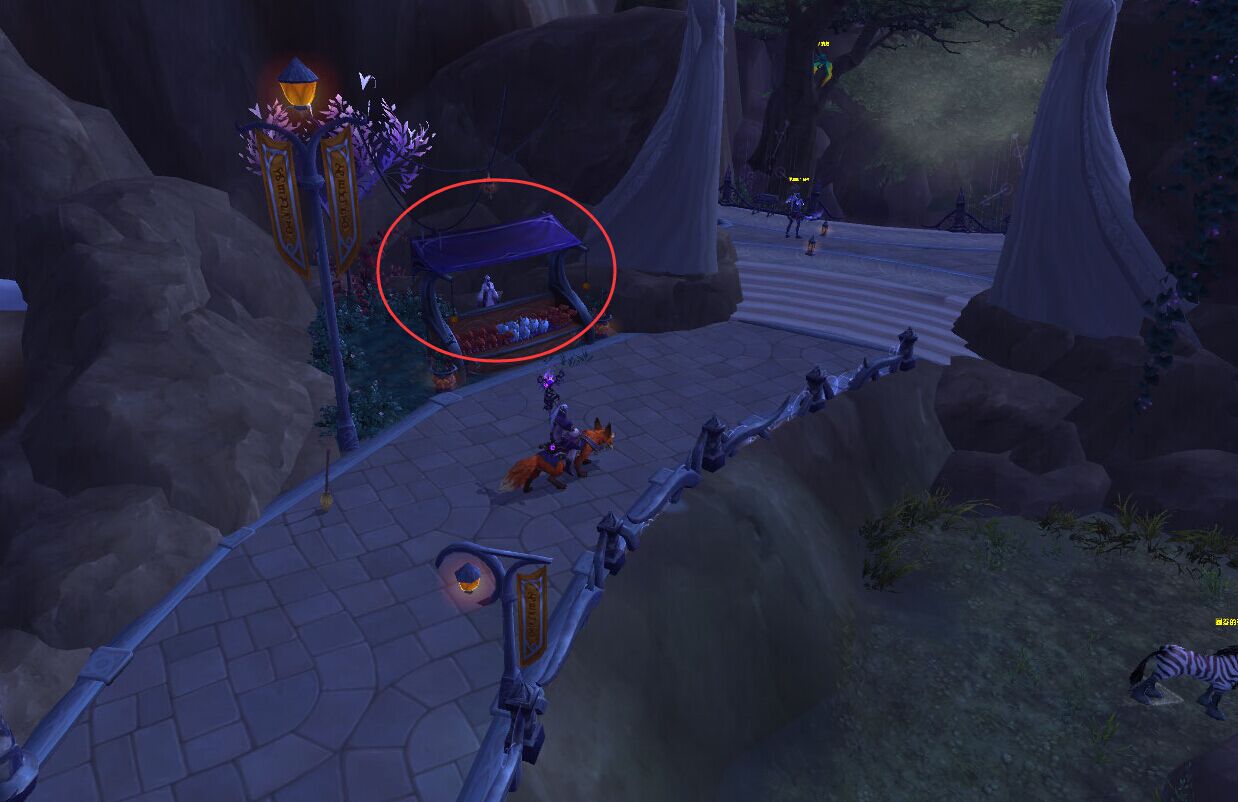 苏拉玛城里,通向魔暴龙训练日常山洞那条路左手边,有一个纪念品商人,坐标[50,52]。位置如图: