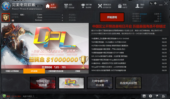 为了满足DPL新秀赛举办的网络技术需求,赛事官方合作方——完美世界为本次比赛提供了大力的支持。曾经举办2016 DOTA2国际邀请赛中国区公开预选赛的赛事指定平台——完美电竞平台,作为DPL新秀赛赛事指定平台,加入到此次赛事中,为玩家提供全面的比赛技术保障。完美电竞平台是完美世界独立研发的全新电子竞技游戏平台,立足广大电竞玩家的需求,提供服务器建主、战队、公会等极致游戏体验。首创战队匹配模式,打造完美战队联赛,开创竞技游戏的一个新的时代!