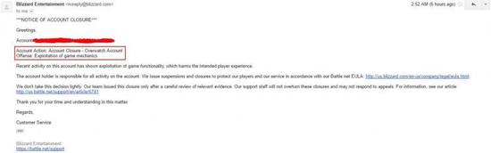 目前暴雪已经对此有所反应,那些滥用这一漏洞的玩家已经有收到暴雪的帐户永封邮件。
