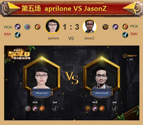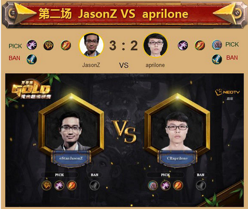 夏季赛B组第二场比赛由eStarJasonZzhe对阵CRaprilone,在连失两局的情况下,eStarJasonZzhe让2追3,也让大家看到了职业的稳健。首局eStarJasonZ的打脸萨遇到了CRaprilone的动物园。在比赛中牌风极顺的动物园瞬间完成铺场,让缺乏AOE的打脸萨无力回天,先失一局。随后eStarJasonZzhe继续使用打脸萨,期望能挽回局势。但在面对抢血更加凶残的火妖法,一切皆是浮云,CRaprilone再下一城,拿到赛点。但就在此时,一个职业选手的素养让eStarJasonZzhe没有丝毫的气馁。先是以动物园对阵德鲁伊的优势对决扳回一局,随后又使用打脸萨手撕解场抢回赛点,战成 2:2 平。最终连翻2局的eStarJasonZzhe无论是在气势还是运气上都压倒了对手,三关对手的克苏恩德,完美逆转。
