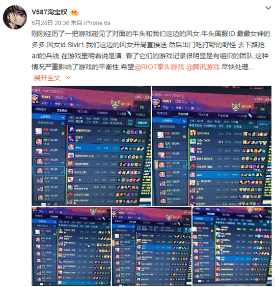 北京时间6月29日,前LPL冠军打野疑似因为排位遭遇演员后,在微博怒斥演员剧组并且直接求助腾讯和拳头解决问题。