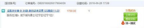 我在2016.06.26日购买了个暗帝号,带荒古太刀,和源助理洛克,花费了1700元。