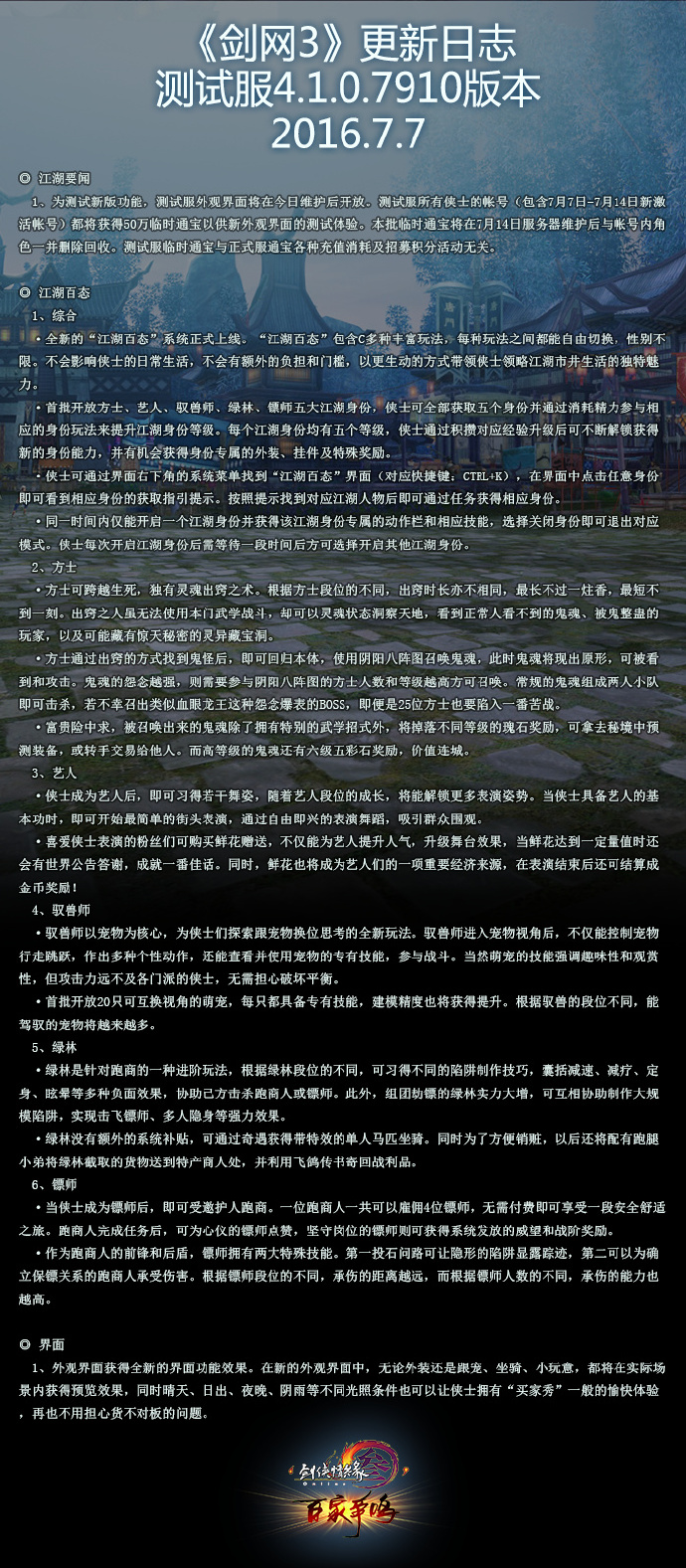 《剑网3》体服更新日志 测试服7月7日更新日志