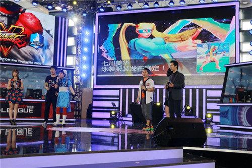 本届G联赛有幸请到了街霸5制作人小野义德先生以及助理制作人绫野智章先生,绫野先生一身春丽打扮登场格外引人注目。两位制作人与现场观众进行了近距离的亲密互动,由小野先生挑选的幸运观众进行了现场1v1比拼,没想到的是小野先生在这一环节竟然挑选了小孩上台互动,最终毫无悬念秒杀其他幸运观众的小孩获得了由索尼互动娱乐提供的PS4一台。随后进行的绫野先生与小孩的表演赛中,小孩也是毫不留情的获得胜利。