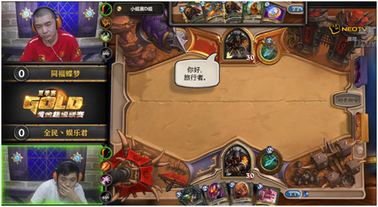 首盘对抗双方猎人内战,蝶梦的中速猎迎战娱乐君的沙驼猎,尽管后者在8费之前始终占据场上主动,但在蝶梦8费打出兽群呼唤之后,缺乏手牌的娱君便陷入了被动,最终不得不选择了投降,1:0,蝶梦先拔头筹;第二局娱乐君用动物园术士迎战蝶梦的蓝龙贼,术士打出动物园最强起手,后手虚空恐魔加烈焰小鬼,可惜在比赛后期术士放慢了节奏,被蝶梦的蓝龙贼一举翻盘,蝶梦2:0领先,拿到赛点;第三盘娱乐君的动物园术士面对蝶梦最后一个职业萨满终于扳回一局,在7费用软泥怪吃掉萨满的毁灭之锤之后蝶梦直接选择了投降,2:1,娱乐君扳回一局;第四盘蝶梦的打脸萨起手十分不顺利,面对娱乐君的法师,火妖法在8费就将萨满打至8血并且手握两个炎爆,娱乐君再下一城,2:2,比赛被娱乐君拖入决胜盘;决胜盘蝶梦的萨满没有再丢掉机会,面对娱乐君的猎人,萨满无视猎人的任何场面,持续打脸,最终取得了比赛的胜利,3:2,蝶梦进入胜者组。