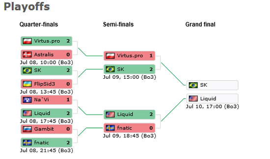 卫冕冠军Fnatic与Liquid在半决赛中相遇,本以为老司机Fnatic会赢得半决赛与SK会师决赛,不料Fnatic受到了Liquid的阻击。本届比赛中Lipuid的发挥非常出色,先让NAVI翻车,又让Fnatic止步半决赛,可以说是爆了一个不小的冷门。不过另一边,SK发挥稳定,在半决赛先负一局的情况下击败了VP,与Liquid会师决赛。