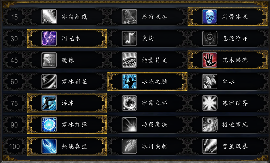 纯单体的战斗选冰冻之触,长时间双目标的战斗选碎冰,寒冰新星不考虑。