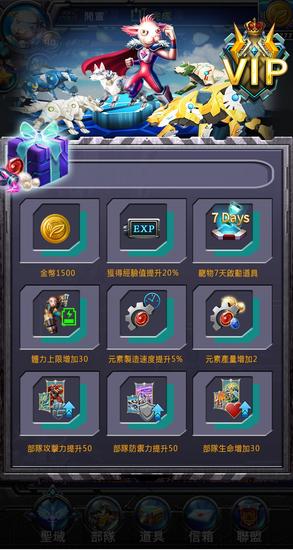 本周推出VIP服务新系统内容,除了可获得经验值加成、Buff能力,最具特色是可以在圣域携带专属宠物,并可附加角色攻击、防御、速度的等级,带给玩家与众不同又倍感尊荣的享受!