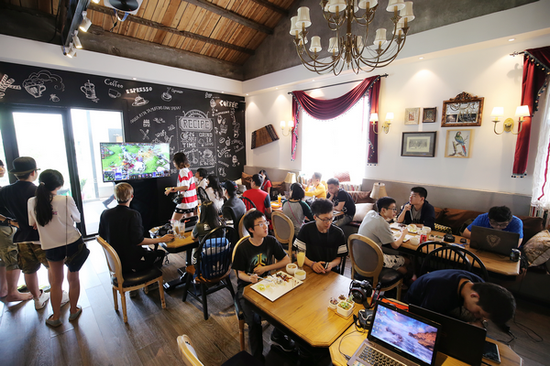 场地间随处可见摆放着的各类零食饮料,让来不及吃饭的选手们能够随时补充能量,投入到即将开启的战斗中。也可以让他们在比赛结束后能够像在家里一样窝在沙发里慵懒放松。