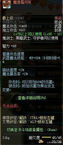 与阳剑组队是很强,白字20,本来还有暴击15。但现在dnf简直是个单机游戏,光暴击15只能说泯然众人,而且和暗杀戒指完美冲突。有更好操作的武器就不要用这把短剑了,除非你有阳剑基友天天和你上线安图