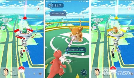 即使玩家不刻意寻找,当手机检测到附近的精灵宝可梦时也会震动提醒玩家注意。捕捉精灵的方法也很简单:盯着手机屏幕,手指轻扫向它们投掷精灵球即可,成功逮到一只精灵概率不尽相同,幸运的话一只精灵球即大功告成,也有需要多试几次才捕捉成功的例子。