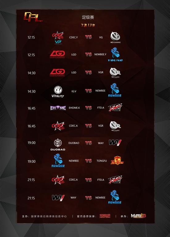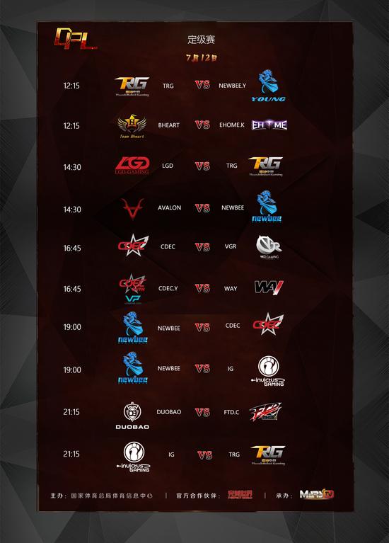 7月12日至7月14日将进行DPL中国DOTA2职业联赛·定级赛最后三个线上比赛日。在这三天的比赛中同样不乏精彩,CDEC对阵VGR,EHOME对阵VGR等强强碰撞即将上演。最后三个比赛日的赛事对积分榜中游的战队尤为重要,现在榜中的FTD.C、Ehome、VG、CDEC.Y等队能否通过最后几场比赛的出色发挥来脱离加赛,直接晋升下一届DPL中国DOTA2职业联赛·顶级联赛中呢?让我们共同拭目以待!