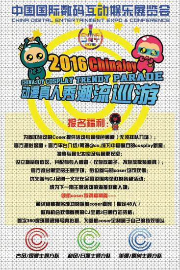 报名表下载地址:2016ChinaJoy巡游方队报名表
