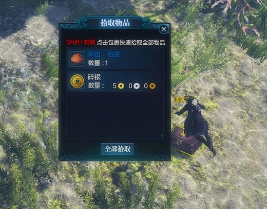 在开启宝箱后,我们可以获得一定数量碎银、鱼饵、帮派贡献牌子,更有几率可以开出风水5的紫色古董。