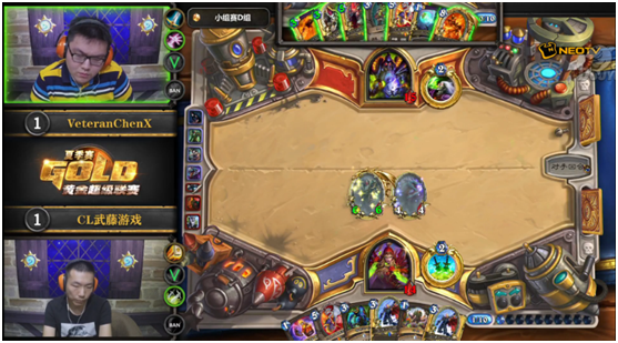 第一局爱陈潇使用带了尤格萨隆的法术德对上武藤游戏的克苏恩战,尽管前期起手较顺的德鲁伊在5费回合双激活上了塞纳留斯,但是武藤游戏的战士在6费回合拍下女王强行与德鲁伊拼了一波场面。战士凭借较高的血量以及乱斗没有让拥有众多大型生物的德鲁伊占到任何便宜,德鲁伊反到在战士拍下克苏恩之后,显得极其被动。首先输掉了第一盘,1:0,武藤游戏先声夺人。第二盘武藤游戏拿出来十分后期的恩佐斯骑士,爱陈潇继续使用尤格萨隆德。这一局德鲁伊的铺场较为顺利,虽然被骑士的末日预言者拖住了铺场速度,但是德鲁伊依靠迦顿男爵的输出建立了场面优势,骑士手中无法解场,最终在德鲁伊场面越来越大的情况下,输掉了比赛,爱陈潇扳回一局,1:1,双方战平;第三局爱陈潇使用此前并不多见的宇宙术士迎战同样并不多见的奇迹贼。武藤游戏的奇迹贼起手十分强势,铺场抢血,宇宙术利用法术解场,下随从架墙,但盗贼利用两个加基森强行过牌,最终带走了迟迟不来雷诺杰克逊的术士,2:1,武藤游戏再次取得领先;第四局爱陈潇继续使用宇宙术,武藤游戏再次派出了此前输过一局的恩佐斯骑士,这是一场漫长的对局,两套后期卡组,术士更偏向于铺场进攻。但爱陈潇忌惮骑士的清场能力,始终不敢过度铺场,骑士依靠拖取得了手牌上的优势,最终术士弹尽粮绝输掉了本局比赛,3:1,资格赛选手CL武藤游戏击败知名选手爱陈潇率先进入胜者组。