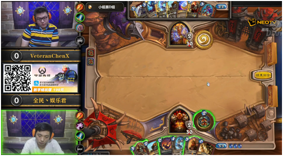 首盘双方战士内战,巧合的是两位都是克苏恩战,经过前期克苏恩的成长之后,娱乐君率先派上克苏恩,爱陈潇这边立马派上希尔瓦娜斯还以颜色。爱陈潇依靠希尔瓦娜斯占据了场上主动,之后双方陷入拉锯战,比赛被拖入到疲劳。此时爱陈潇率先进入疲劳,而娱乐君在两回合后也紧接着进入疲劳,爱陈潇手中还握有18-18的克苏恩,但娱乐君手中还握有食尸鬼斩杀,爱陈潇由于疲劳较娱乐君多了两点,最终输掉了本局,1:0,娱乐君取得了首盘胜利;第二盘娱乐君的动物园表现不俗,面对爱陈潇的克苏恩战,动物园术在8费回合利用手中的两个力量的代价22血斩杀了爱陈潇的战士,2:0,娱乐君取得2分领先;第三盘爱陈潇的克苏恩战士没有再出现纰漏,面对娱乐君最后一套卡组火妖法师,火妖法在先进入疲劳的情况下,最终输掉了比赛,1:2,爱陈潇扳回一局;第四盘火妖法内战,双方胶着了很久,最终娱乐君击败了爱陈潇的火妖法,3:1,娱乐君淘汰了爱陈潇。