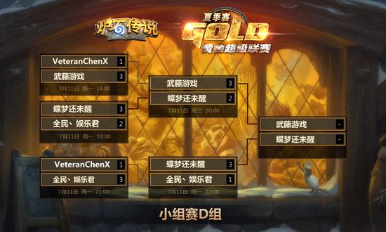 北京时间2016年7月11日18:00,2016《炉石传说》黄金超级联赛夏季赛D组小组赛展开争夺,D组拥有两名上届炉石世锦赛参赛选手,但两人的表现忧喜参半,爱陈潇两战皆负惨遭淘汰,而蝶梦还未醒经过3场苦战从败者组杀出取得了一个出线名额,另一位出线的选手是从资格赛杀出的武藤游戏。