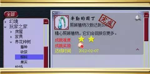 这是种植植物种子次数分别达到60、70、80、90、100次的成就介绍,虽然种植的次数比较多,想要拿满播种成就中的所有成就点会比较漫长,但是相信勤劳就会有收获,不仅能拿成就点,还能获得植物的果实,吃出经验、金钱和物品奖励(2级植物果实:经验、金钱、储备金,3级植物果实:经验、金钱、储备金、可获得物品奖励,4级植物果实:较多的经验、金钱,无储备金,可获得物品奖励)。
