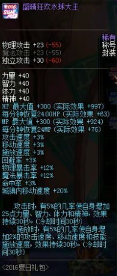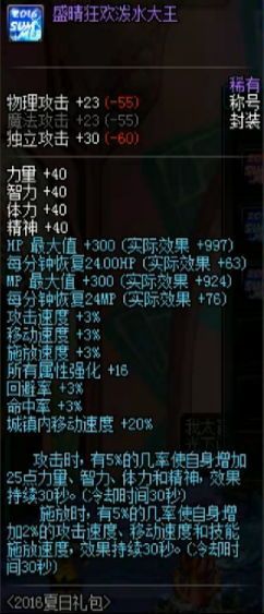 夏日称号分为三种,都有各自专长属性,分别是物暴、魔暴加12%,所有属性强化+16,暴击伤害+10%。