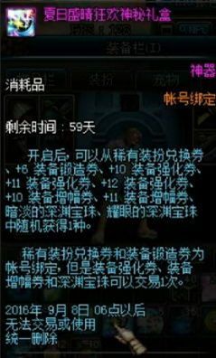 喜闻乐见的神秘礼盒,同样是以邀请函和强化券为买点,不过听说这次开天空的几率还是很大的哦,想要天空套,有武器需要强化的玩家,可以尝试买一套试试人品哦。