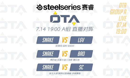 由旋风比赛主办,赛睿中国独家冠名的电子竞技赛事,赛睿OTA守望者联盟战队赛第二赛季将于7月14日周四晚上19:00点正式开幕。在第一天的节目直播中,被分在A组的OTA S1卫冕冠军,职业战队SNAKE将首战亮相并连战三场,先后对阵L&V、Bro、SC三支队伍以争夺晋级16强的出线资格。从赛睿OTA S2第一周开始,比赛将由英众文化独家转播,邀请知名电竞主持人、主播进行解说,并通过各大游戏直播平台进行全程直播!