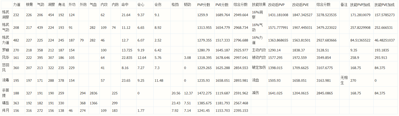注:本贴计算数据确实显示练武气劲比洞察略强, 不过没有太大差别,大家根据自己实际情况理性选择。