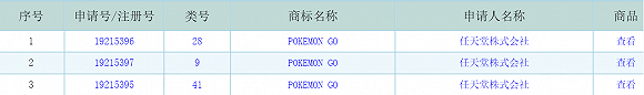 任天堂已为“POKEMON GO”提交商标注册申请