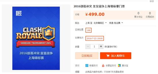 而此次皇室战争锦标赛门票也被一些黄牛党盯上,目前在淘宝上,原价199元的观众门票,已经被炒到499甚至更高的价格。