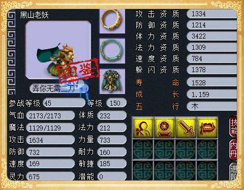 4技能全红善恶黑山老妖,该召唤兽的资质和成长虽然不高,但是老板依旧选择把它打造成了一个全红的攻宝宝,不过技能这么少,在打书的过程中善恶却没有掉,这拼的也是人品呀。