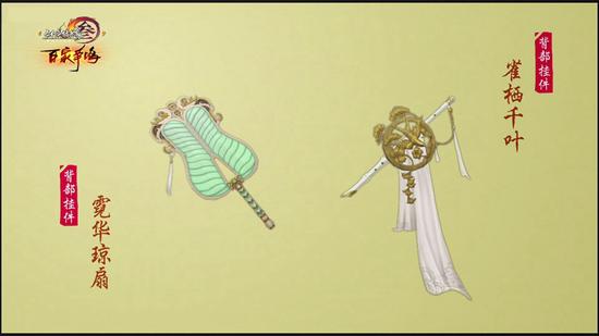 背部挂件【雀栖千叶】骤闻邻笛思旧义,乌鹊呼晴穿晓枝。背部挂件【霓华琼扇】虹霓长别天外雨,琼楼又迎云燕归。
