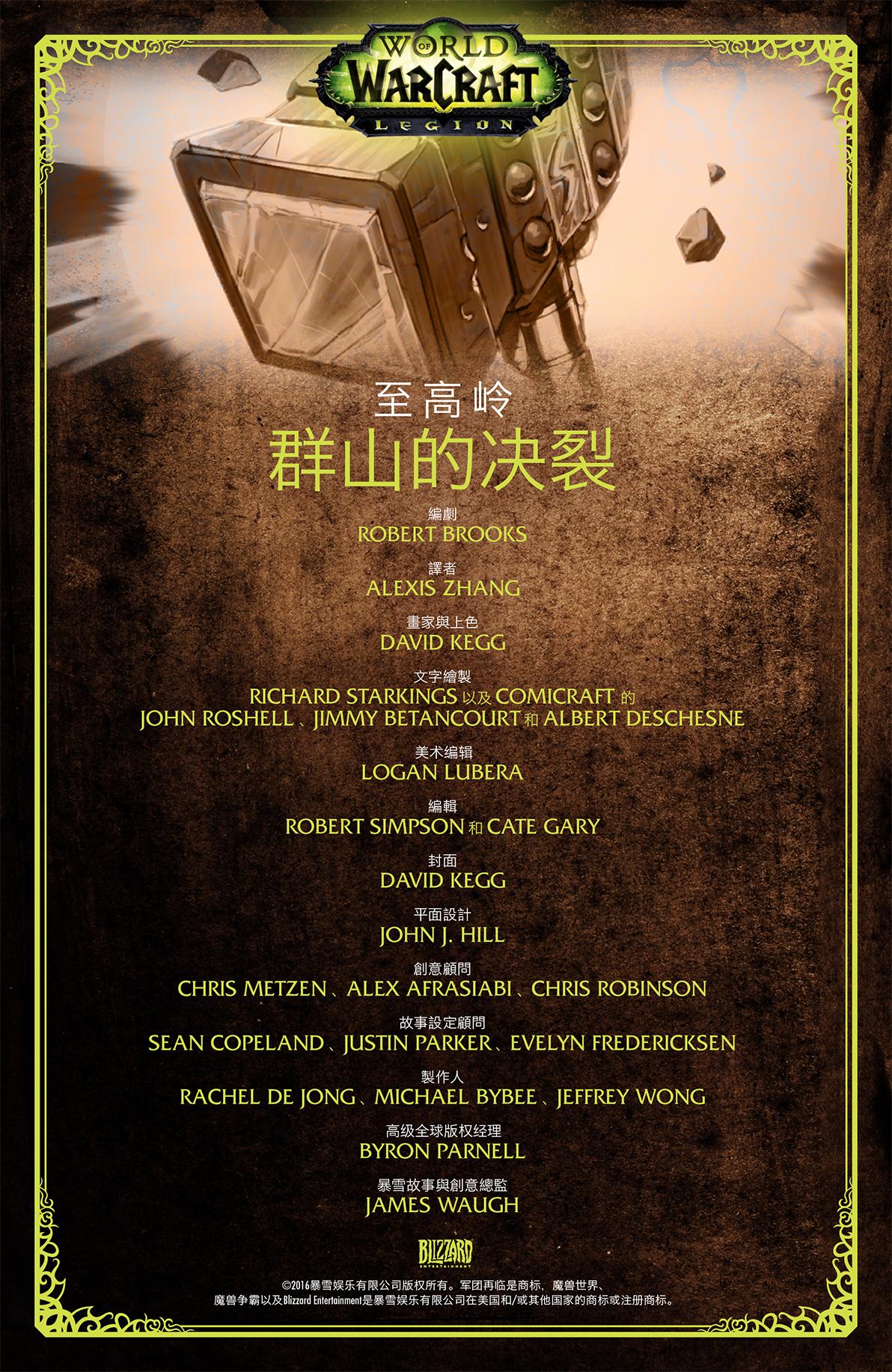 《至高岭:群山的决裂》由罗伯特·布鲁克斯执笔,大卫·凯格绘制,是关于燃烧军团入侵艾泽拉斯的系列漫画作品中的第三部。