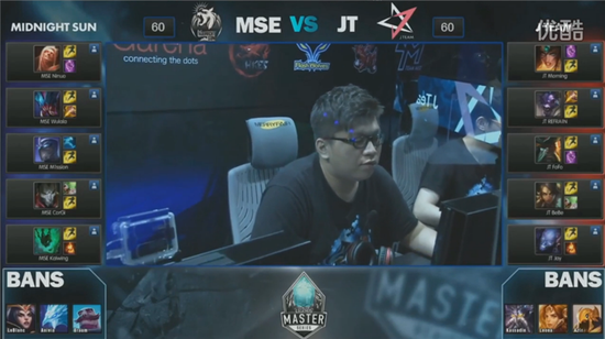 第二局MSE主动换线,但与第一局不同的是,在推掉防御塔后,MSE双人继续推进上路,被牺牲的慎在下路补发育时,带线过深频频被抓。优势逐渐被JT掌握。MSE毫无招架之力。在一波波的攻势下被零封击败。