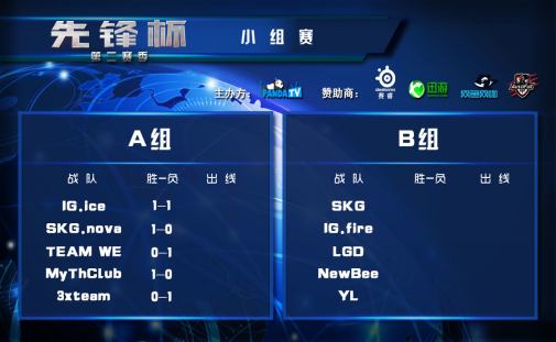 “先锋杯”正赛首轮昨日正式开战。在首日的比赛中,A组的5支队伍均完成了首秀。卫冕冠军IG.ice首日激战两场,尽管首场比赛以0:2输给SKG.nova;但随后他们找回了状态,2:0干脆利落的拿下了3xteam。而在另外一场比赛中,MyTHClub2:0力克WE,成功拿到开门红;给自己本赛季的征程带来一个美好的开始;希望他们可以继续努力。