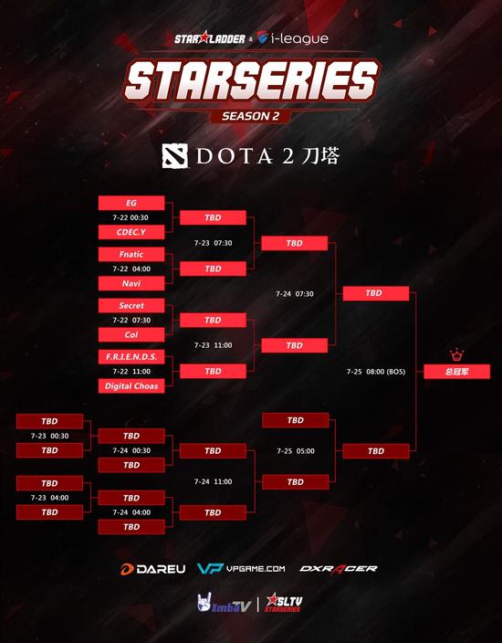 由ImbaTV联合Starladder举办的SL i-League群星联赛第二赛季DOTA2线下决赛将于北京时间7月22日凌晨0点30 分正式开始,揭幕战将由CDEC.Y战队与EG战队在位于美国洛杉矶的BTS House中共同打响!总共8支从全世界各地选拔而出的DOTA2战队将共同争夺30万美元的高额奖金与TI6前最后的冠军荣耀!