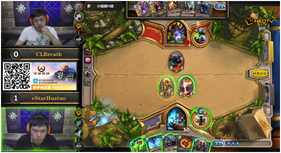 首盘术士内战,但Breath的宇宙术士明显跟不上这个版本的节奏,在华佗的铺场下,宇宙术士显得办法不多,而Breath在7费回合不假思索地拍下冰吼,结果被华佗击杀,1:0,华佗取得开门红;第二盘Breath的宇宙术士面对华佗的萨满终于成功地逃脱,在7费、8费的关键回合,术士只有4血,但华佗的萨满都无法将术士击杀,术士惊险地拖到9费用红龙抬高了血量,10费术士抽到雷诺宣告了本局比赛结束,1:1,Breath将比分扳平;第三盘,Breath的德鲁伊和华佗的克苏恩战士陷入漫长的拉锯战,德鲁伊在前中期优势较大的情况下,被战士逐渐扳回了场面,Breath利用尤格萨隆重又建立了一定优势,但是此时德鲁伊已经濒临疲劳,面对每回合加四甲的战士,德鲁伊必须保全自己的随从做到输出最大化,但是Breath没有交横扫解怪而是选择用场攻换掉战士的随从,这直接导致战士用食尸鬼解掉了德鲁伊的随从,最终德鲁伊输掉了这局比赛,2:1,华佗再次取得领先;第四盘萨满内战,Breath的起手较为顺利,5费场上就站了3个随从,华佗5费挂了毁灭之锤,这把锤子不停地在解场,最终华佗的萨满死于自己的卖血,2:2,Breath再次将比分扳平;在关键的决胜盘较量中,华佗的萨满场面本来极占优势,但德鲁伊在9费回合碧蓝幼龙战吼过牌过到横扫,这一发大横扫出手,萨满的场面被德鲁伊完全清理干净,而华佗的萨满又未带过牌,面对德鲁伊接下来的罗斯,萨满无力应对,最终输掉了比赛,3:2,Breath险胜华佗,晋级16强。