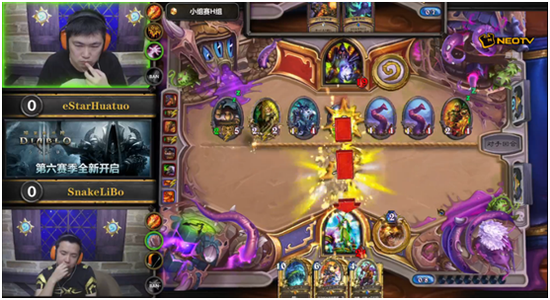 第一盘华佗用动物园术士迎战李博的尤格萨隆德鲁伊,术士面对德鲁伊的法术解场始终占据了场上主动,在8费回合,华佗利用夜色镇议员和飞刀的站场,配合手中的禁忌仪式、恐狼前锋以及力量的代价15血击杀了德鲁伊,1:0,华佗取得开门红;第二盘李博使用了火妖法,华佗使用了萨满,李博在解场时出现了失误,9费回合被华佗打出了寒冰屏障,法师仅有2血,李博寄希望于尤格萨隆出现奇迹,但是并没有,萨隆的“电影”尚未放完,法师就已经死在了萨隆的法术下,2:0,华佗将领先优势扩大并取得了赛点;第三盘火妖法师内战,双方都在互拼法术消耗解场,而李博的嗜法者给了华佗一张关键的照明弹,正是这张照明弹使得李博的寒冰屏障失去效果,华佗抢先一个回合击杀了李博的法师,3:0,华佗兵不血刃战胜了“天师”李博进入胜者组。