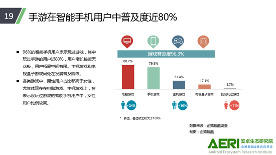 7月21日,腾讯应用宝联合企鹅智酷共同发布《(6月)中国Android生态大数据报告》。根据腾讯应用宝大数据显示,接近80%的智能手机用户玩过手机游戏,同时国内手游用户付费比例达到68.4%,手机用户日均手游时长锁定“黄金32分钟”。