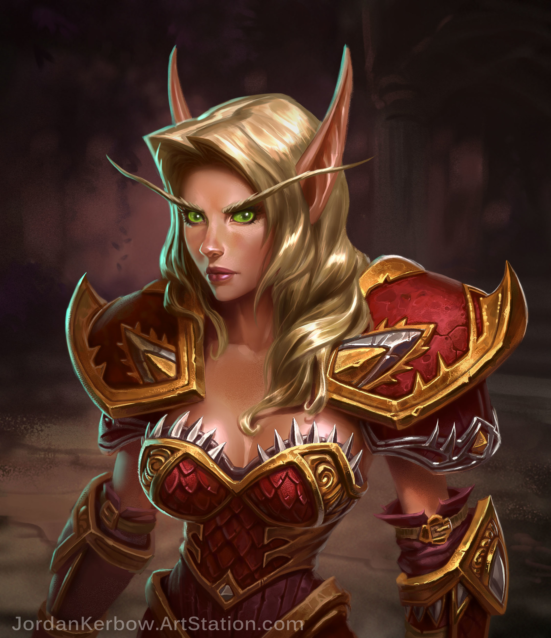 魔兽玩家原创画作分享:神情专注的血精灵俏妹子