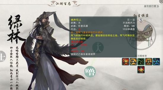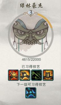 剑网3江湖百态之绿林技能及升级所需经验。如图所示。