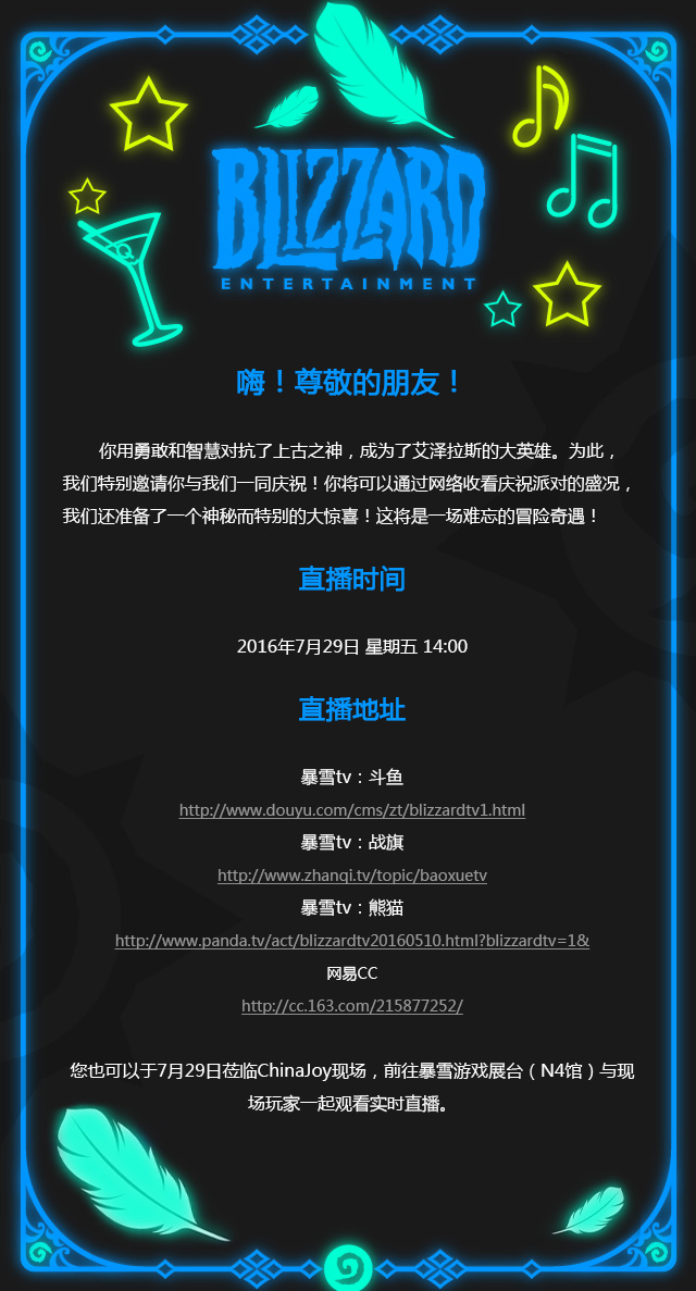 邀请函的内容与昨天国外网站公布的一样。从内容的言语中可以看到,对抗古神的战斗终于结束了,为此举办一场庆祝派对,以及一个大惊喜。