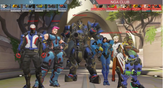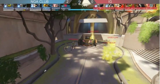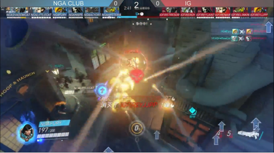 第二回合,NGA进攻。IG的阵容开场选择单辅助加强输出火力,开场收效明显,IG有了更多的火力去压制NGA的双飞。但是略作调整的NGA渐渐开始掌握了主动,IG单辅助的情况之下输出受到了一定限制,缺乏续航的弊端开始凸显。IG换回双辅助之后更缺乏火力去牵制NGA的双飞,最后一波NGA的莱因哈特冲锋杀死开大的IG的卢西奥,开大控场完美配合击杀。NGA胜。