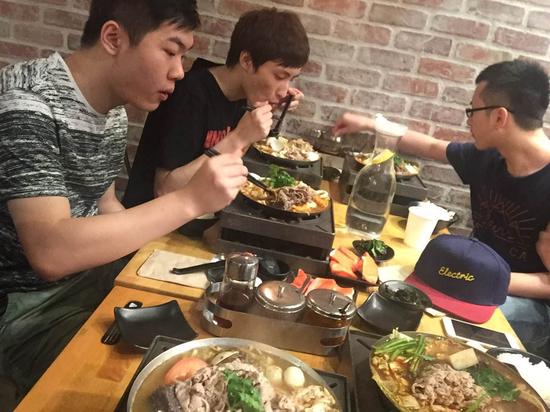 CDEC.Y早上败者组的比赛应该是在上午9点半开打,但是我在7点就遇到了和我一样前去吃早餐的CDEC.Y的队员们,第一辆班车要8点才到,所以吃完早餐之后我们除了吐槽这里土豆炒蛋顺便再怀念下小笼包烧麦之外也闲聊了一会。因为TI之后职业圈难免要发生地震,所以这可能是他们五个人在一起的最后一次线下赛,重视也是理所应当的,希望能够多打几场。聊了没一会车就来了,于是我们一行准备上车出发,此时又正巧遇到了来吃早餐的Mushi。
