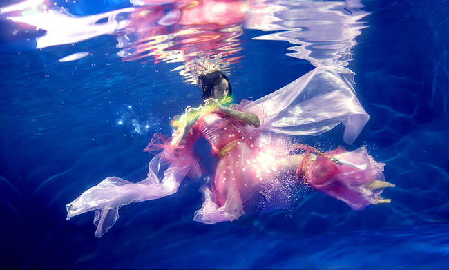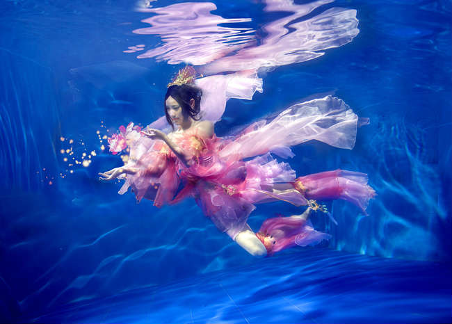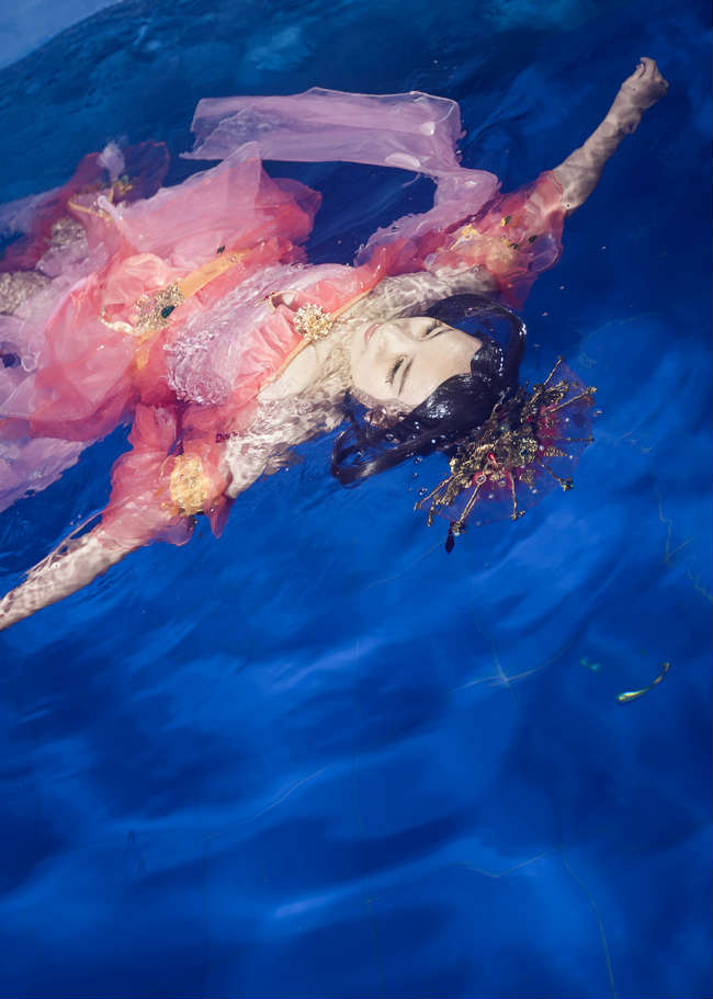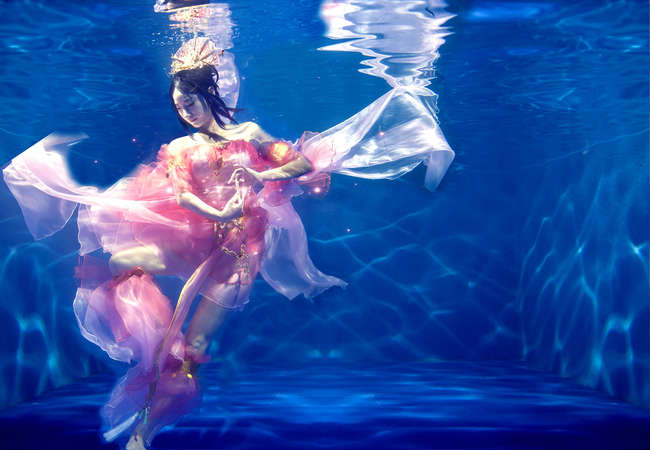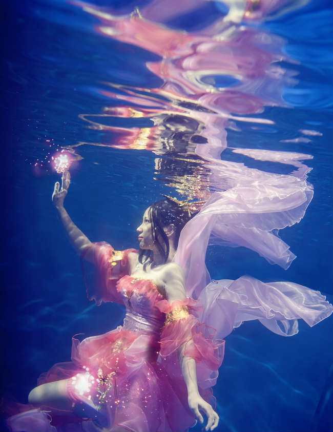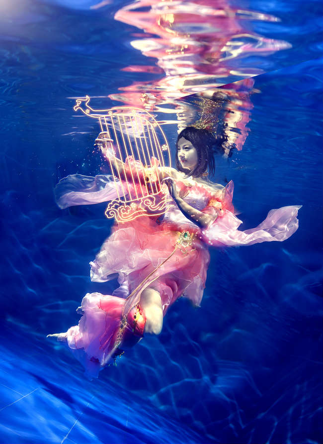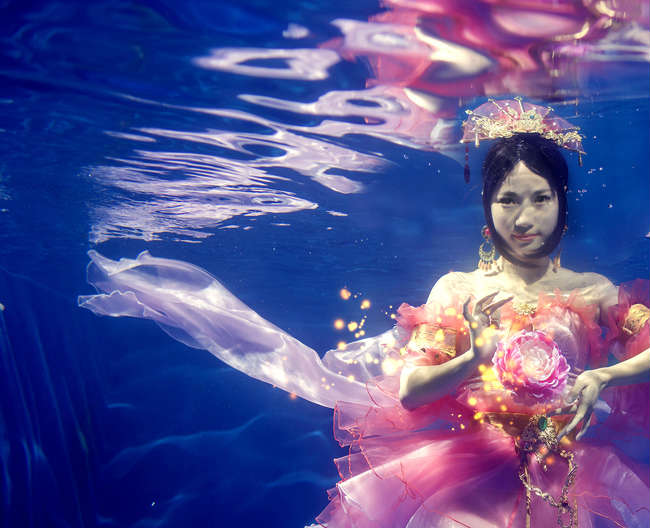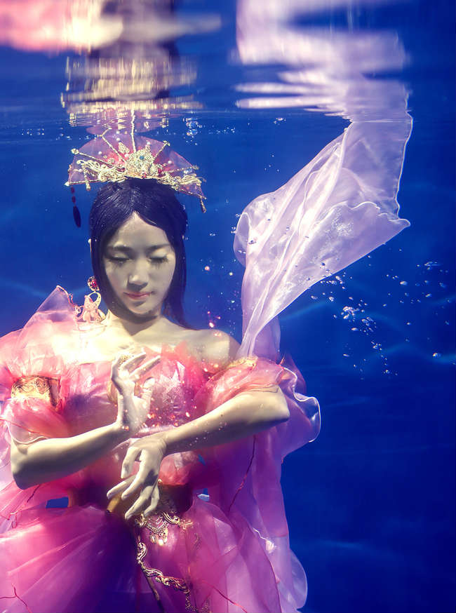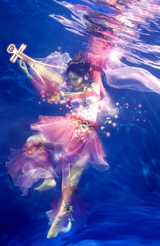 水下不比岸上好拍,每个动作表情,腿部的飞天动作都是分开拍摄的,每个表情动作都拍了十多张。辛苦小珊了