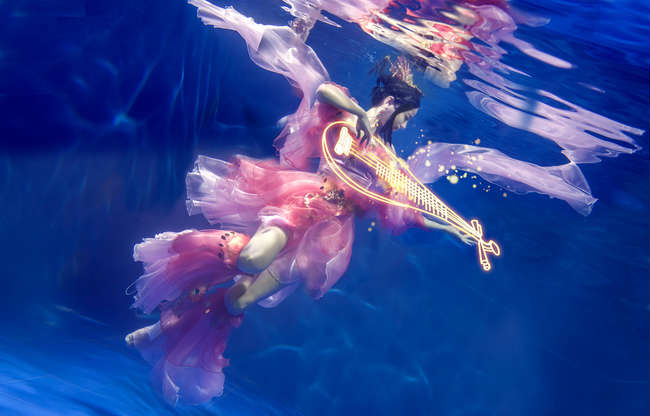 一直想拍飞天效果的七秀,想来想去选择用水的浮力来表现飞天的效果。衣服为了效果也选了蚩灵七秀的海报版。